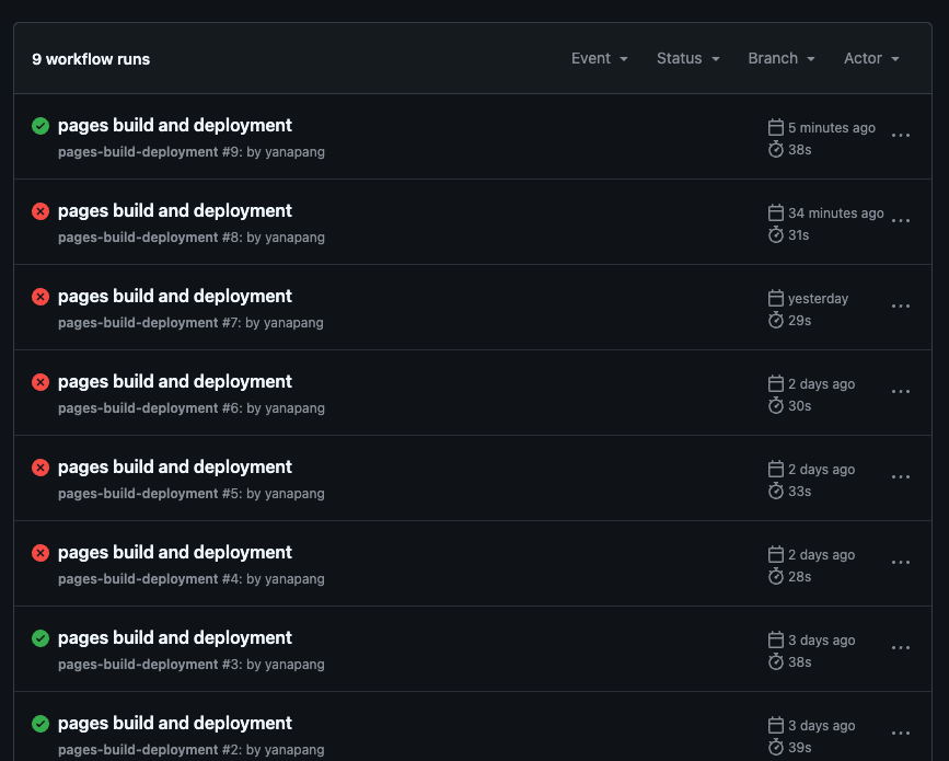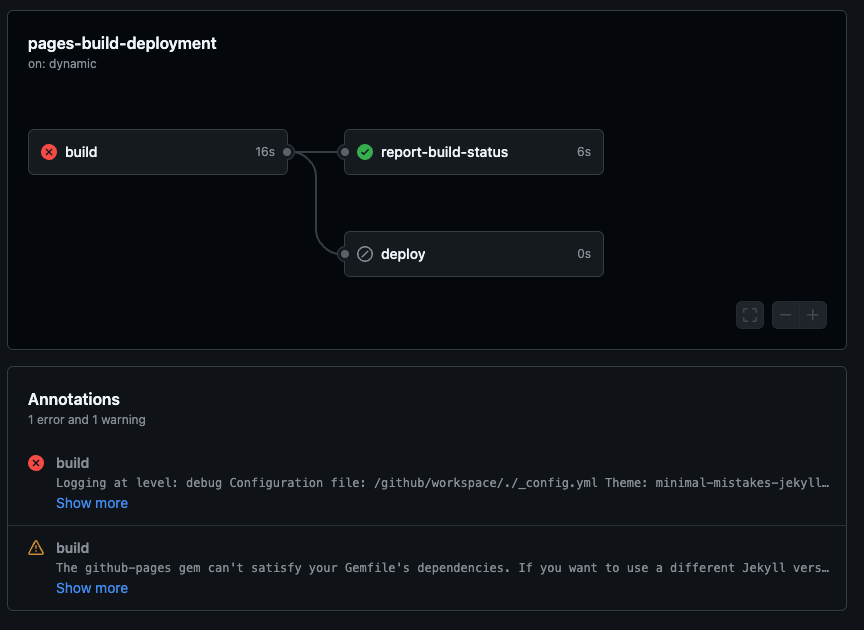 여기에 이어서 오늘 깃허브를 들어가봤더니, 빌드가 제대로 안되고 있다는것을 알게 되었다.