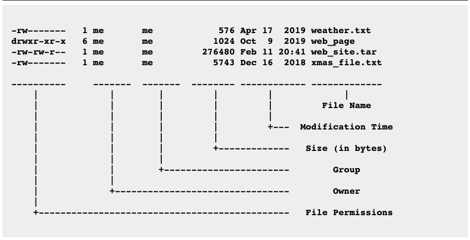 ls 커맨드에 -l 옵션을 사용하여 출력하면 long 형식으로 출력된다.
